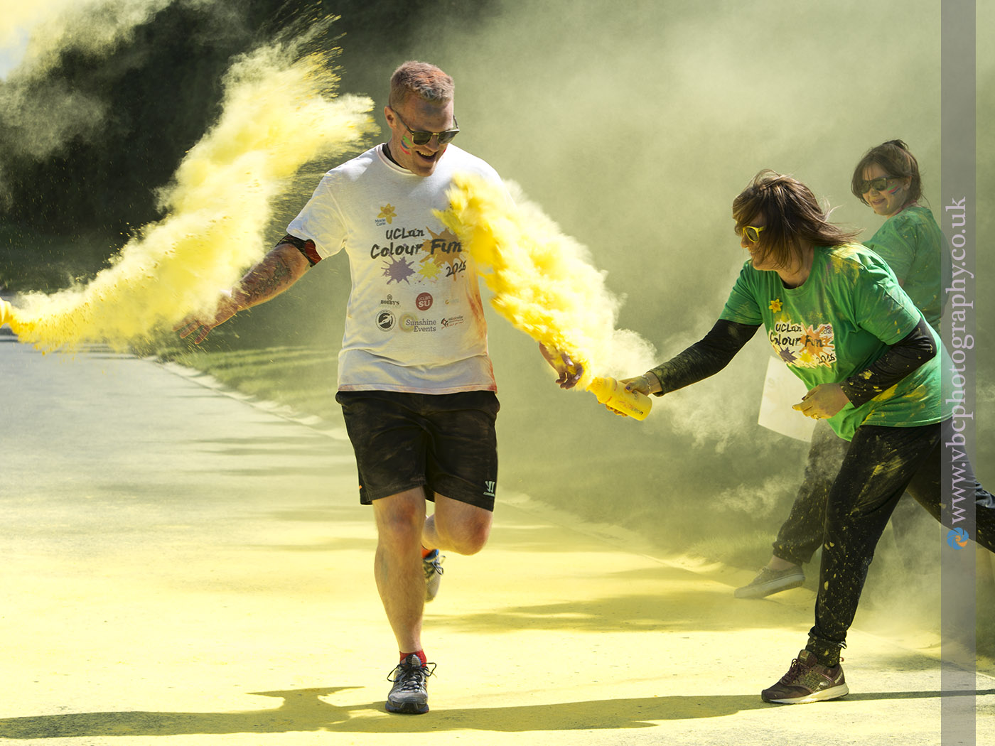 The sky was clear and bright and air was blazing with colour as hundreds of sure-footed people participated from young children to students, staff and members of the public to run 5km at UCLan Sports Arena while being showered with vibrantly coloured powder along the route.